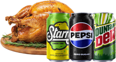 Rebate will be issued as a digital payment only. Get $2.00 cash back after purchasing ONE (1) multipack package across the following brands: PEPSI®, MOUNTAIN DEW®, STARRY®, MUG®, BUBLY®, MANZANITA SOL®, BRISK®, LIPTON®, SCHWEPPES®, CRUSH®, AND ONE (1) qualifying holiday meal item including turkey, ham, chicken & more. Available at retailers in the United States. Limit ONE (1) rebate per customer. Program ends the earlier of 12/31/25 or when 100,000 redemptions have been reached, whichever occurs first. Additional terms apply. All trademarks are the property of their respective owners.