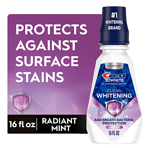 Crest Crest Mouthwash 3 D White Clean Whitening, Breath Protection, Prevents Surface Stains, Kills Millions Of Bad Breath Germs, Alcohol Free, Radiant Mint Flavor, 473 M L (16 Fl Oz) 16.0 Fl Oz