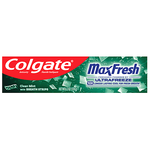 Release an instant blast of freshness with Colgate® Max Fresh Clean Mint Toothpaste. Powered by Ultrafreeze, this invigorating Spearmint toothpaste offers 10X longer-lasting cool for fresh breath*. This mint toothpaste, with the help of Ultrafreeze and hundreds of breath strips, releases a powerful rush of freshness for long-lasting fresh breath. Colgate® Max Fresh Toothpaste comes in a refreshing Clean Mint flavor that invigorates the brushing experience. However, it’s more than just a toothpaste for bad breath, Colgate® Max Fresh Clean Mint Toothpaste is also a fluoride toothpaste and helps prevent cavities. With its refreshing Clean Mint flavor and hundreds of breath strips, Colgate® Max Fresh Toothpaste leaves your breath feeling fresh for hours.