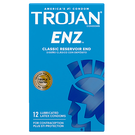 TROJAN ENZ Premium Smooth Lubricated Condoms, 12 Count have a classic, trusted design that works to protect against unintended pregnancy and sexually transmitted infections (STIs). When the mood hits, you and your partner can focus on each other. Made with premium quality latex, TROJAN ENZ Condoms also have a silky smooth lubricant that provides comfort and sensitivity. These condoms are electronically tested to help ensure reliability and help protect against unintended pregnancy and sexually transmitted infections (STIs) while you play. For extra safety, there is a special reservoir end. Includes one 12 count box of TROJAN ENZ Condoms. TROJAN Brand condoms are America's #1 condom, trusted for over 100 years. The TROJAN Brand promotes a safe, healthy, and fun sex life. From condoms to vibrators to lubricants, TROJAN Brand is dedicated to delivering innovative, high-quality products that offer pleasure and protection.