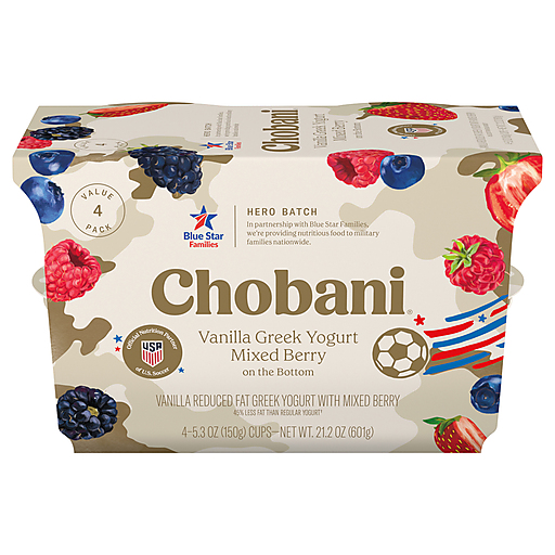 Try Chobani® Reduced Fat Vanilla Greek Yogurt Mixed Berry on the Bottom. Made in partnership with Blue Star Families, a first-of-its-kind combination of real, delicious berries on the bottom topped with rich vanilla Chobani® Greek Yogurt. Through our partnership with Blue Star Families, we’re strengthening and empowering military and veteran communities nationwide. We’re proud to help increase access to nutritious food for American heroes.