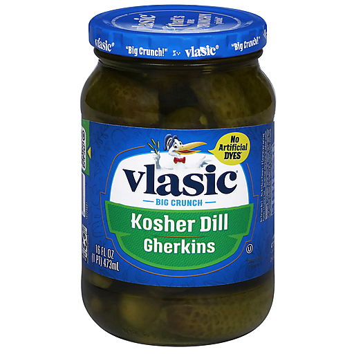 Vlasic Kosher Dill Gherkins Pickles are deliciously crunchy with a classic dill taste. All ingredients, along with the Vlasic secret pickling recipe, make these Kosher pickles one-of-a-kind. These snack pickles contain 0 calories per serving. Gherkins pickles are ideal for serving alongside sandwiches. Top fresh salads, or eat these Kosher dill pickles right from the jar for a satisfying snack. Vlasic Kosher Dill Gherkins Pickles are packed in a resealable 16 fluid ounce jar to keep them crunchy and delicious. Vlasic offers several flavors and sizes of pickles, peppers and relish. Keto Friendly: 1g net carbs (1g total carbs minus 0g dietary fiber), and 0g added sugar per serving.