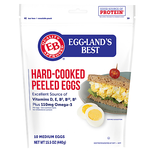 BETTER TASTE. BETTER NUTRITION. BETTER EGGS.® Egglands Best Hard Cooked Peeled Eggs make snacking on the go more nutritious and delicious with farm fresh taste that's packed with protein to keep you moving! Our award-winning eggs are an excellent source of vitamins and folate with added nutrition as compared to ordinary eggs. We do things with a health-driven purpose from the very start, so snack time never comes with regrets. Our hens enjoy a wholesome, all-vegetarian diet with no animal by-products, recycled or processed foods, hormones, steroids or antibiotics of any kind, which means more nutritious and better tasting eggs that are proven to stay fresher longer than other eggs. Every bite has vitamins and minerals that help support your nutritious diet. We conduct more than 75,000 tests each year, and created the most rigorous egg quality assurance program in the industry. When you're short on time, but don't want to skimp on nutrition or taste, our Hard Cooked Peeled Eggs make it easy to treat yourself to something special any time with a resealable pouch that keeps eggs fresh. Sprinkle on some salt and pepper for a delicious, protein-rich snack, or slice them up and top your avocado toast or cobb salad to really elevate your plate. Or be everyone's favorite guest with a flavorful deviled egg or potato salad that's the hit of the party. Take a quick break from the ordinary and simply enjoy — no effort required!